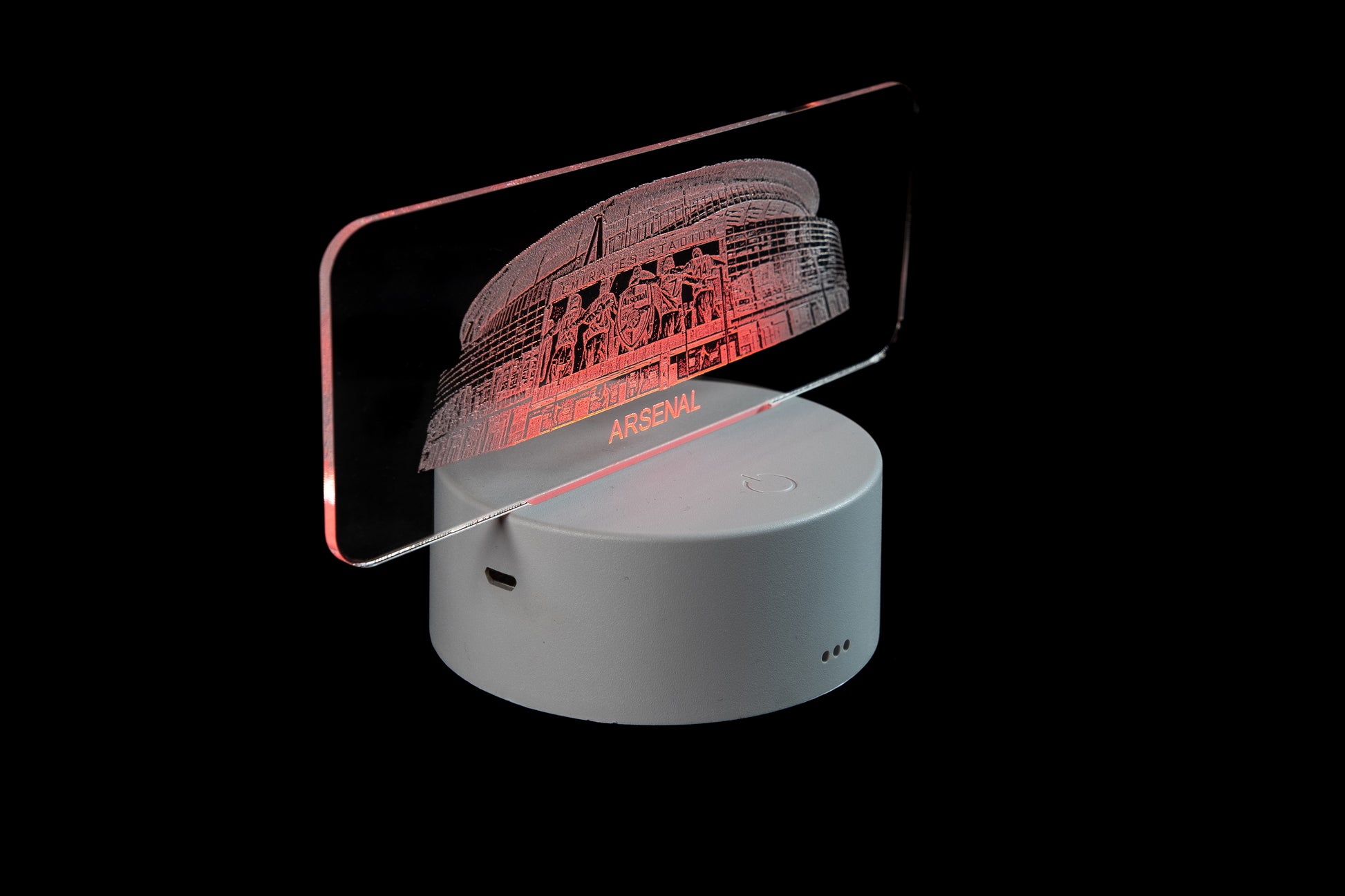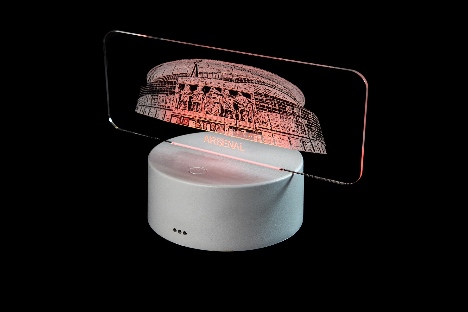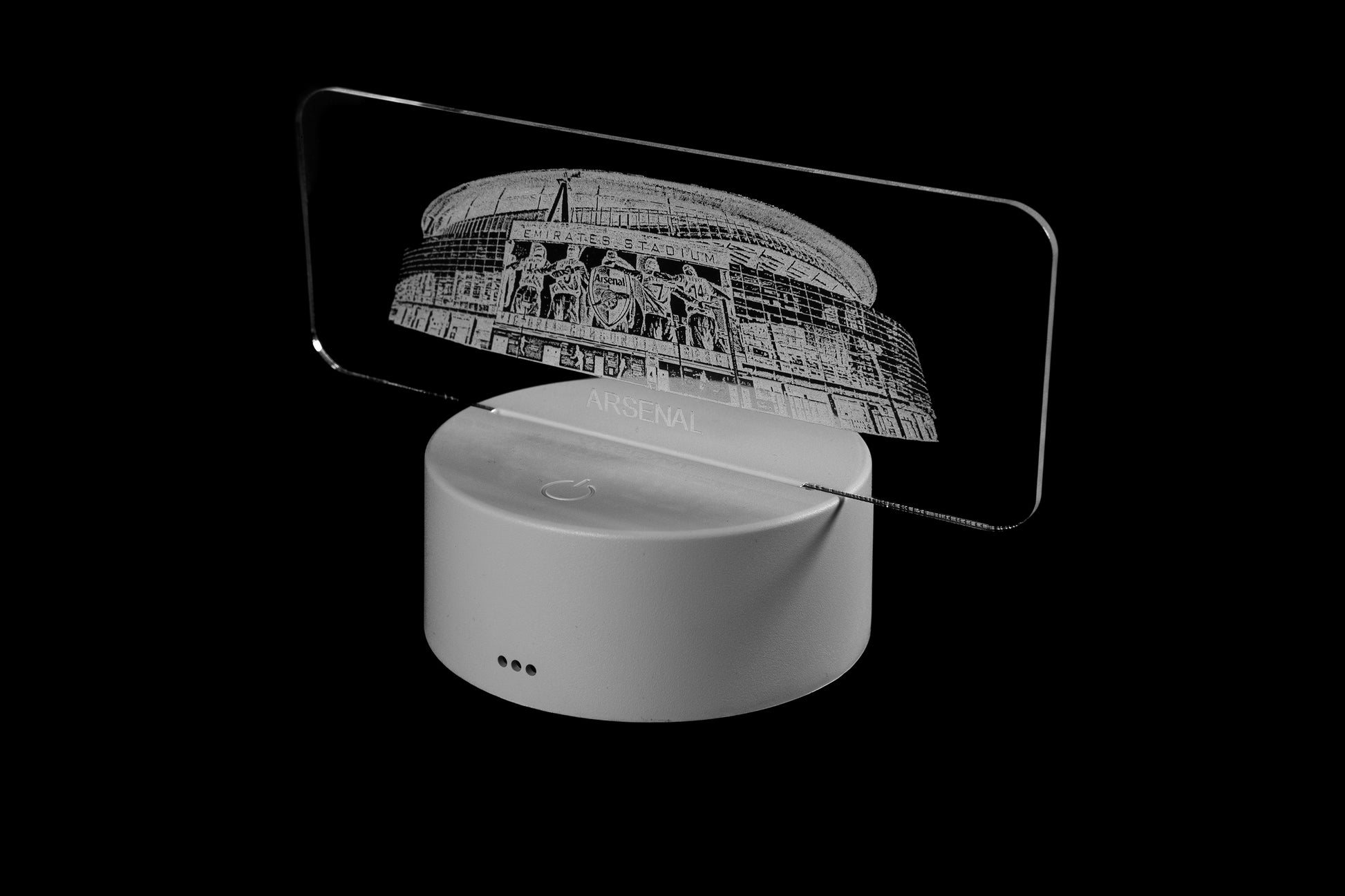 Ele foi projetado, fabricado e embalado na Escócia, Reino Unido, e é construído com uma base redonda de plástico contendo até 10 lâmpadas LED multicoloridas e finalizado com um suporte de acrílico fundido gravado com a elevação frontal do estádio. Também vem com controle remoto e pode ser alimentado por bateria (pilhas não incluídas) ou cabo USB fornecido.