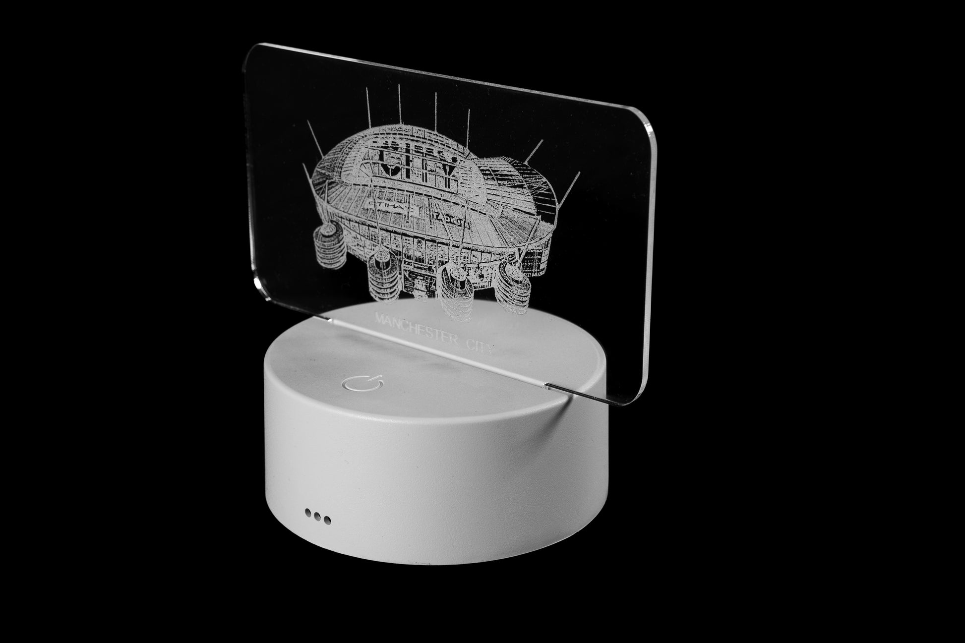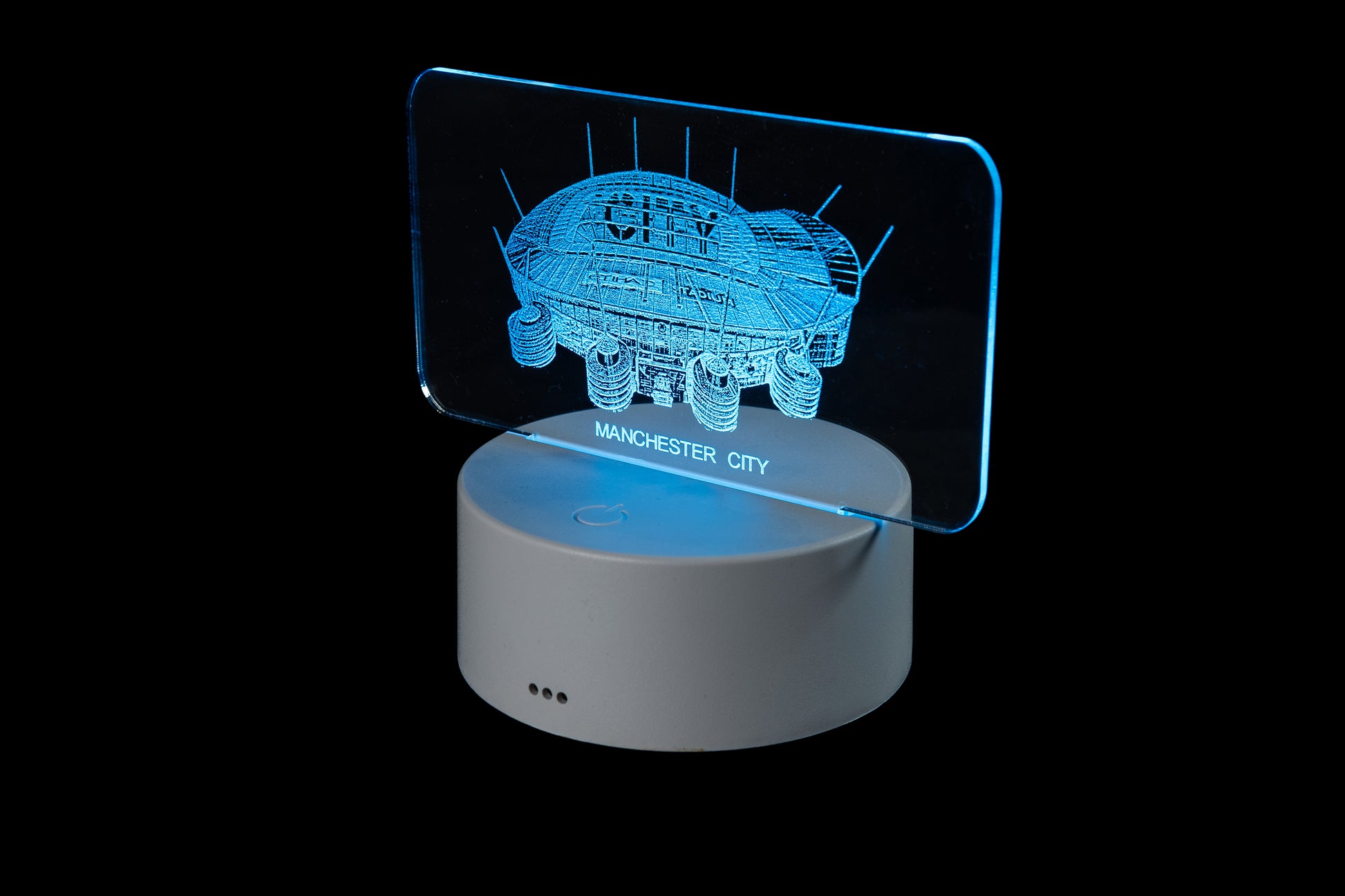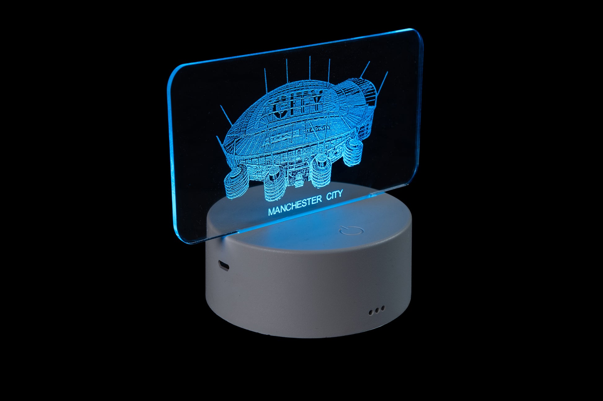 Ele foi projetado, fabricado e embalado na Escócia, Reino Unido, e é construído com uma base redonda de plástico contendo até 10 lâmpadas LED multicoloridas e finalizado com um suporte de acrílico fundido gravado com a elevação frontal do estádio. Também vem com controle remoto e pode ser alimentado por bateria (pilhas não incluídas) ou cabo USB fornecido.